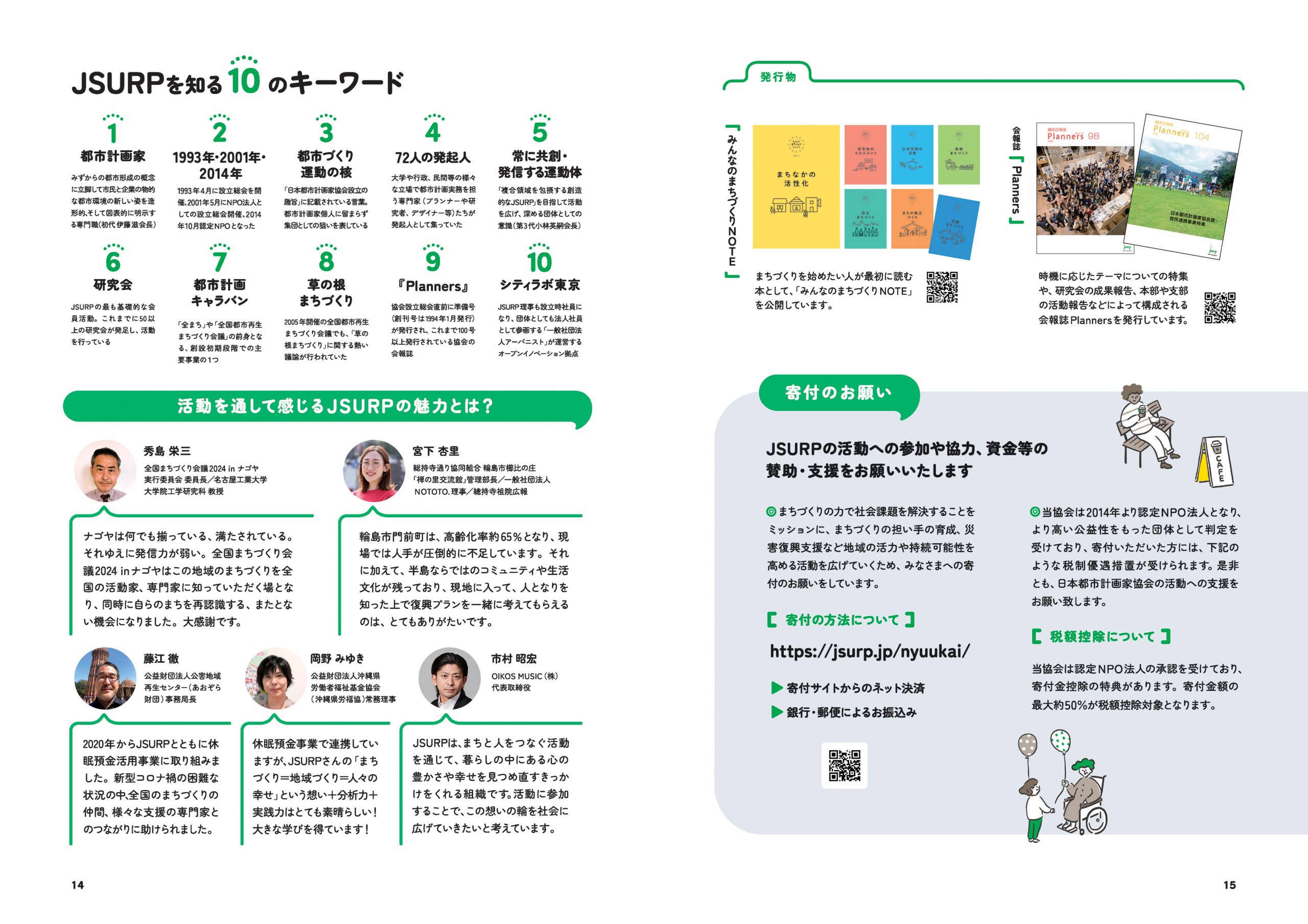 日本都市計画家協会(JSURP)の活動や関係する人々をわかりやすく紹介する冊子です。是非ご覧ください!