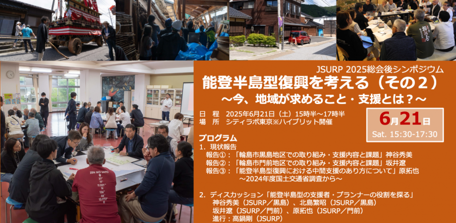 JSURP総会後シンポジウムご案内「能登の里海里山から考える能登半島型の復興の形」2024.6.22(土)15:30~17:30